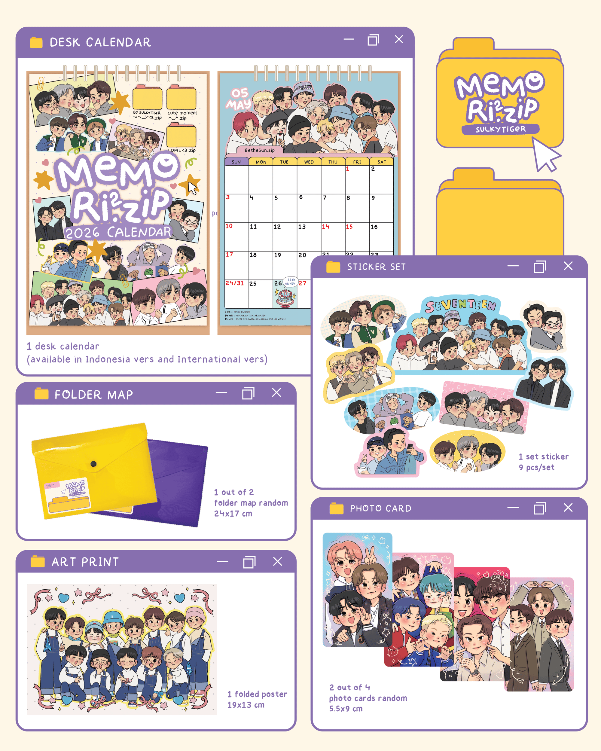 - Include 1 set sticker (9 sticker), 2 random PC fanmade, 1 art print, 1 folder map